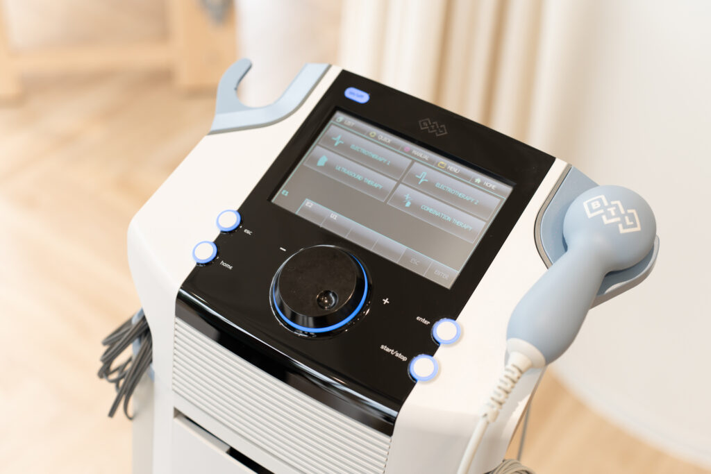 Ultrasound Therapy uses high-frequency sound waves to stimulate blood circulation, reduce inflammation, and alleviate pain. This helps promote soft tissue healing by stimulating blood flow and cellular repair.