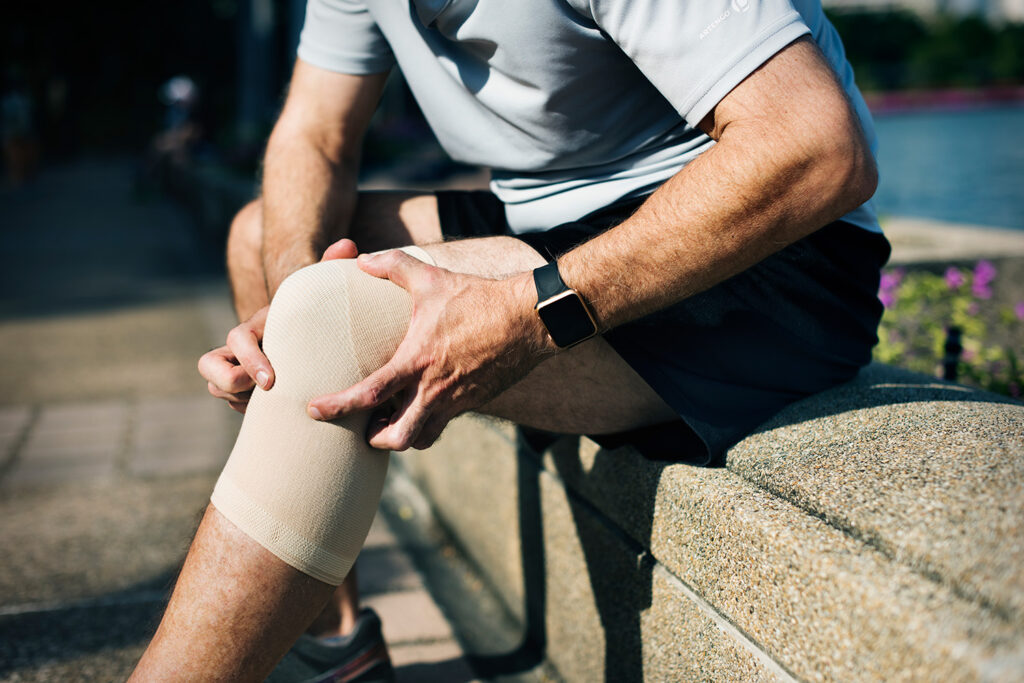 การดูแลเบื้องต้น: เลี่ยงการลงน้ำหนักนานๆ ใช้สนับช่วยพยุง และบริหารกล้ามเนื้อ